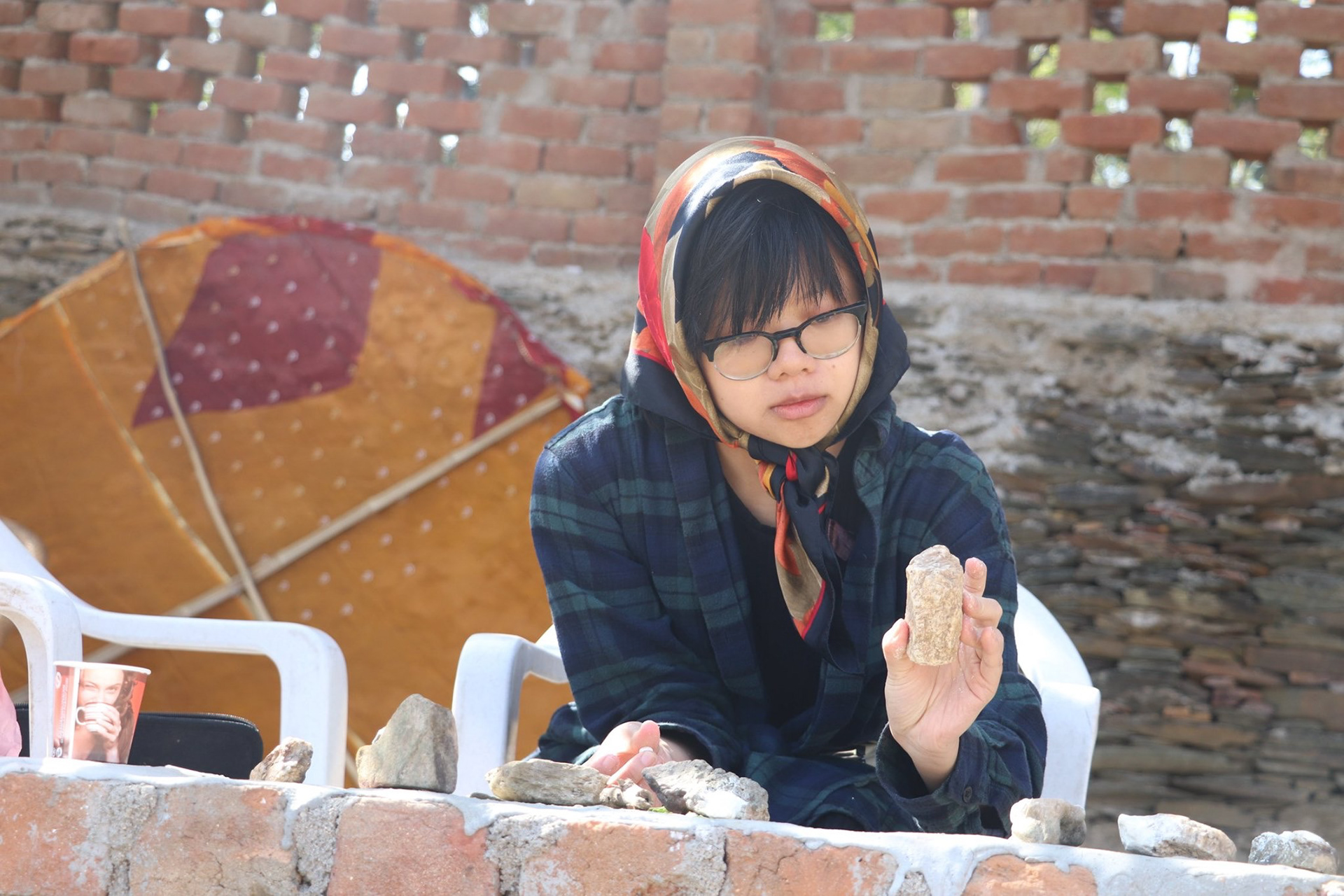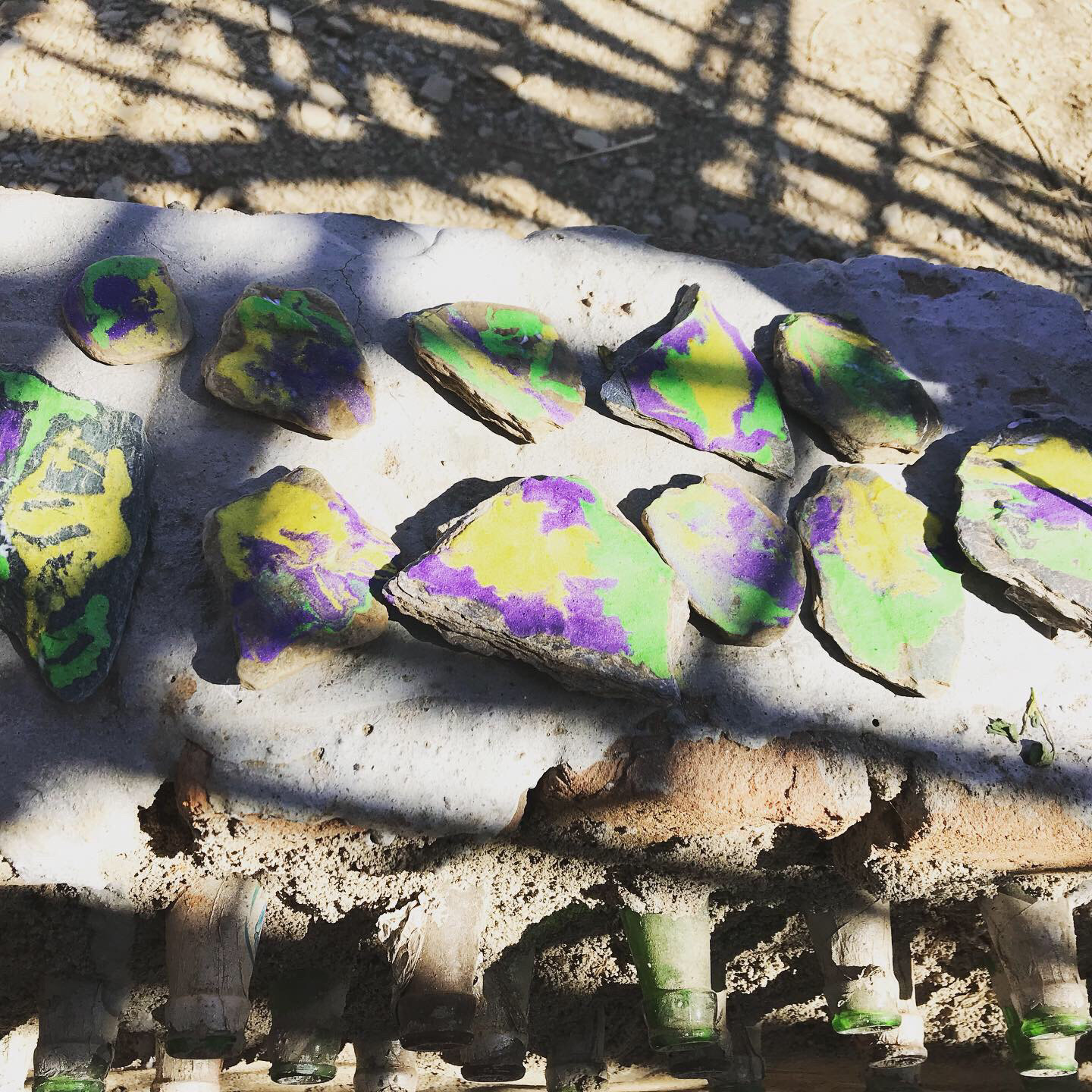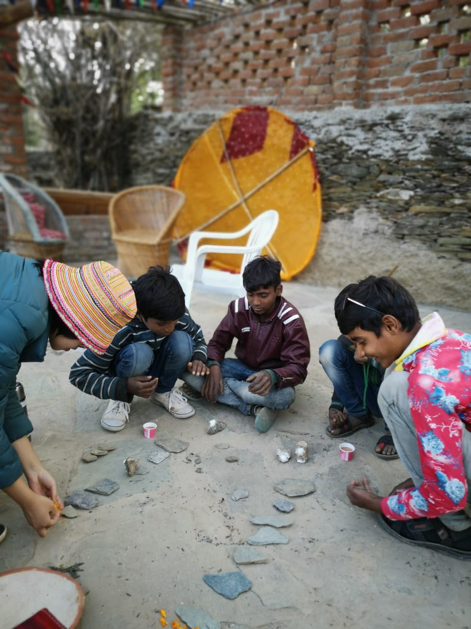 As a way to communicate with the local children who visited our residence without the barrier of language, I created a simple board game from stones found in a nearby river and clay.
